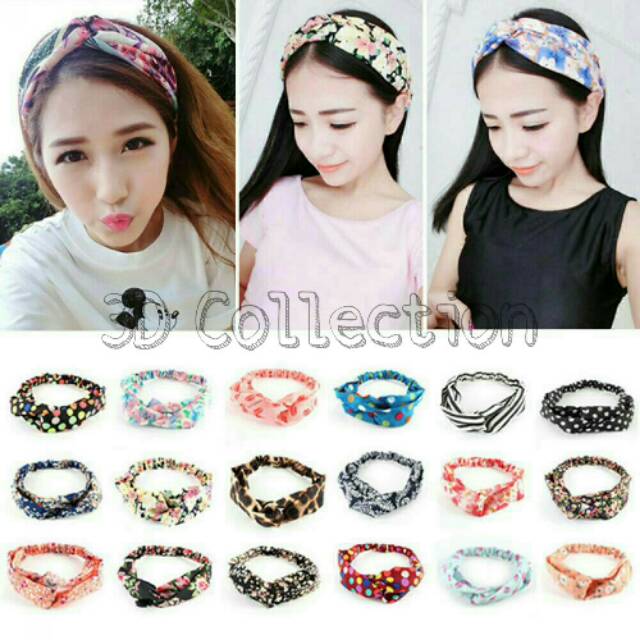 Bando Bandana Silang Elastis Karet Korea Headband Hairband Motif